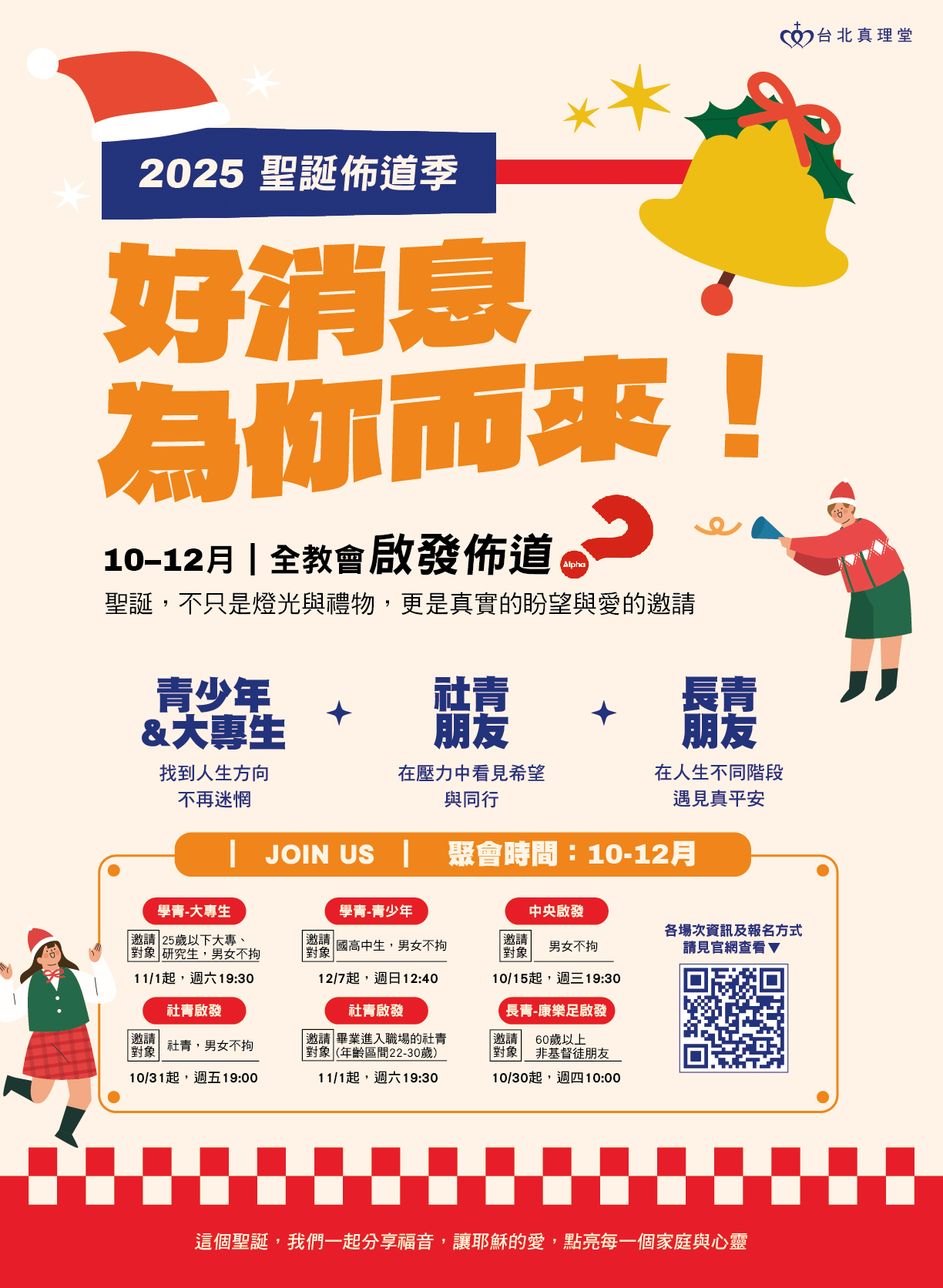 讓我們一起代禱、邀請、陪伴,讓這個聖誕成為真理堂充滿果子與恩典的季節 🌟