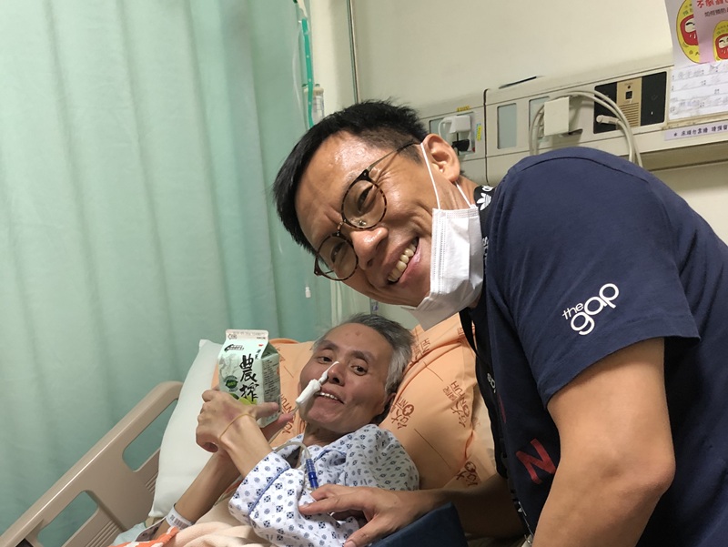 ▲每週四一早,謝龍年傳道(右)就出現於醫院,不僅與醫護人員有緊密互動,更與每一位他服事的患者做朋友,在靈性關懷的服務過程中把愛與平安帶到病患生命中。