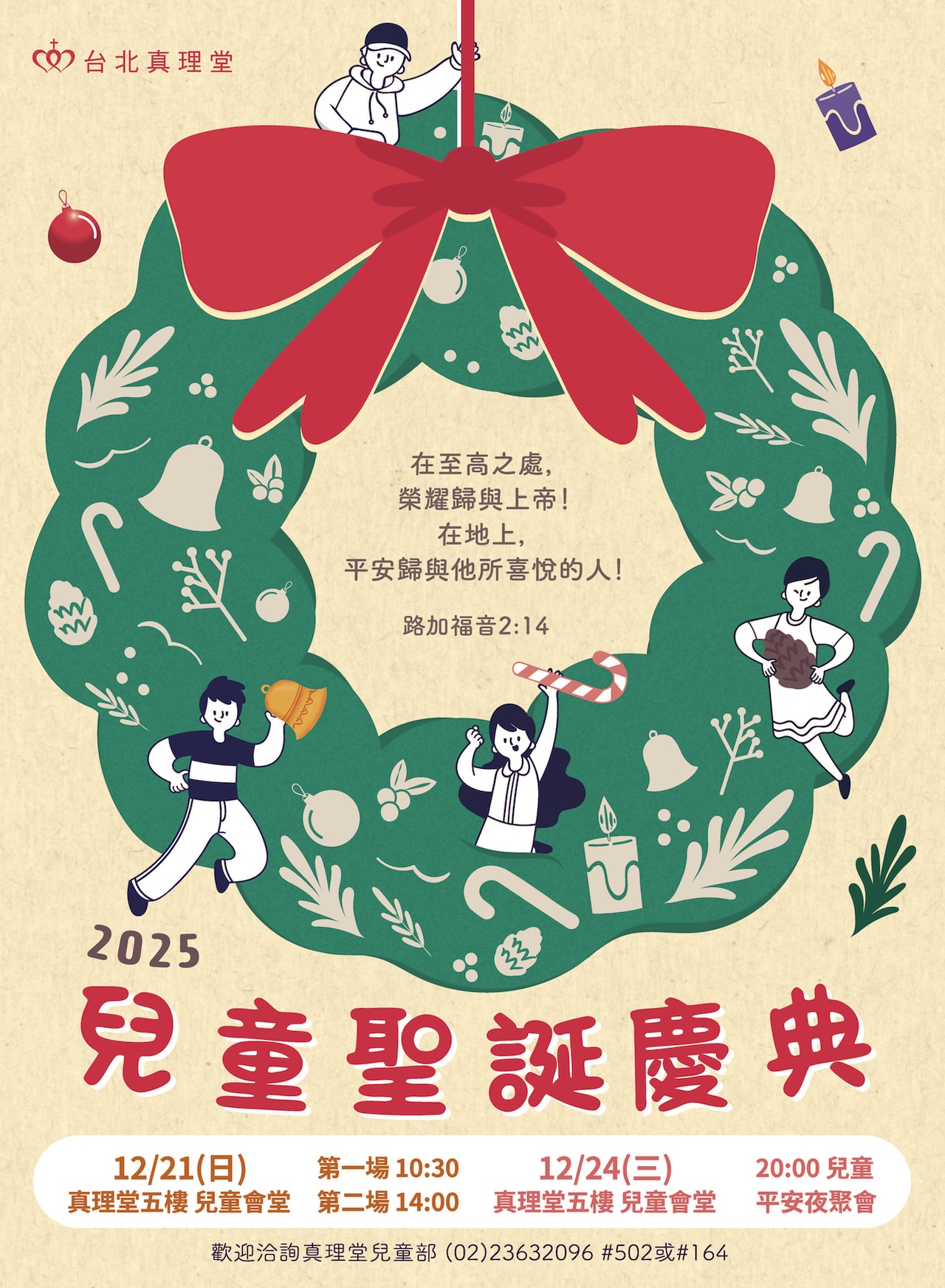 ❌ 溫馨提醒:12/21(日)沒有第一、第三堂兒童主日學