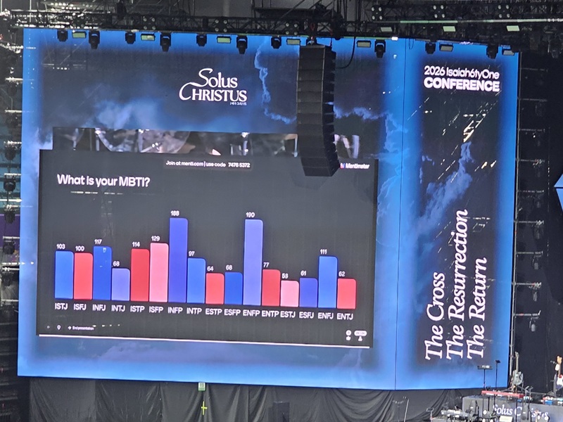 講員一開始談我們的「身分」,當下透過現今年輕人常聊的話題「你的MBTI是哪一型?」(16型人格特質中,你的人格類型是什麼?)作為開場,現場直接調查、即時顯示與會者MBTI 的比例,充分暖場並拉近跟年輕人的距離;接著,就從利未記「獻祭」的角度切入,引領會眾思想:為什麼耶穌要釘在十字架上?講員鉅細靡遺地拆解、描述獻祭的過程,並說明其意義,再講到耶穌如何成為完美的祭物,完成救恩、拯救全人類。對我們團隊的一些同工來說,能夠透過利未記這卷不容易理解的書卷完整地理解「奇妙的交換」的神學意義,帶給大家寶貴的領受。